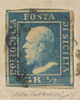 Trattasi del francobollo più raro di tutta l'area italiana di cui si conoscono solamente due esemplari provenienti dalla stessa lettera, questo su frammento perfetto l'altro staccato dal supporto difettoso