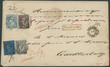 10 Neugroschen König Johann I. cyanblau, allseits breitrandig mit Teil der Nachbarmarke unten, 2 Neugroschen mittelblau, 1 Neugroschen hellgraurot, Type I und 1/2 Neugroschen grau, Type I je mit Entwertung durch Nummernerstempel „1“ als portogerechte Frankatur auf eingeschriebenem Express-Brief der 3. Gewichtsstufe von „DRESDEN 15.FEB.59“ nach Quedlinburg mit Ausgabestempel, Umschlag mit Beförderungsspuren im Rand, sonst in guter Gesamterhaltung, dekorative Vierfarbenfrankatur und in Verbindung mit der 10 Neugroschen-Marke als Inlandsverwendung eine große Seltenheit, signiert Dietrich und Franke und Fotoattest Arnold Vaatz BPP (2020), Provenienz: 376. Heinrich Köhler Auktion 2021