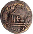Pfennig, unbest. Münzstätte (vermutlich Aachen). +HLVDOVVICVS IMP AVG Brustbild r. mit Lorbeerkranz//XPISTIANA RELIGIO Kirchengebäude. 1,55 g. schön, Rest von Altvergoldung, Kratzer, sehr selten