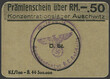 Konzentrationslager Auschwitz (zweite Auflage), Prämienschein zu 50 Reichspfennig o.D. (1944). Rs. mit Stempel „Bergwerksverwaltung Oberschlesien G.m.b.H. der Reichswerke Hermann Göring BRZESZCZE“. II+