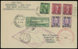 ZEPPELIN FLIGHT: 1930 (May 31-June 6), Return South America Flight mixed franking postcard to Germany, franked by five air post values, tied by Cristobal ''MAY 22. 1930'' ds, upon arrival to NYC uprated by Zeppelin 65c green and cancelled on May 29; German and American (type II) flight markings, Friedrichshafen ''6.6.30'' receiver, VF and rare, only 25 cards exist, PF certificate, Sieger #64 III, C.v. €1,600, Est. $1,500-$1,800