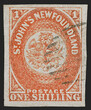 Newfoundland, 1860, 1sh Orange (15; SG 15). Large to huge margins all around, the size of which are unheard of on the One-shilling value, brilliant rich color, clear impression, light oval grid cancel EXTREMELY FINE GEM. AN INCREDIBLY CHOICE USED EXAMPLE OF THE 1860 ONE-SHILLING ORANGE, SCOTT NO. 15. The One-shilling value of the 1860 Issue is notorious for having small or no margins. The Ryterband example, with its huge margins, bright color and unusually light cancel, has all of the attributes one would desire, but probably thought could not exist on a single stamp. The rarity of this stamp in this quality cannot be overstated. Ex Collier and Lanza. With 1995 B.P.A. and 2009 Greene Foundation certificates. Scott $11,000. SG £12,000. Unitrade C$15,000