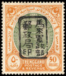 1942 Trengganu $50 green and yellow, chop "F" in black SG